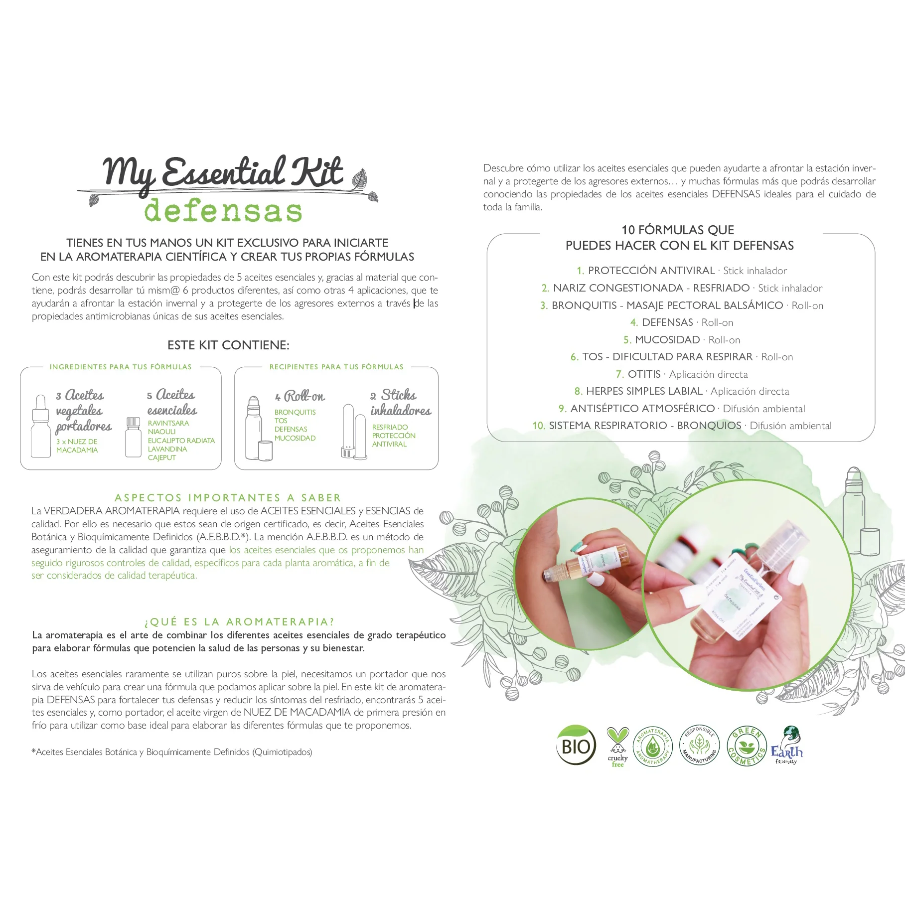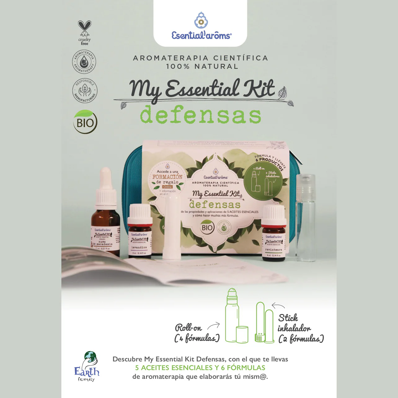 Fortalece tus defensas de forma natural con el My Esential Kit Defensas de Esential’arôms 🌿. Aprende a crear tus propias fórmulas de aromaterapia científica con aceites esenciales puros (Ravintsara, Eucalipto, Niaouli, Lavandina y Cajeput).